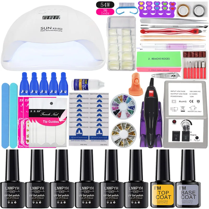 Nail set 36/48/54/90w UV LED Lamp for Nail 6Pieces Set of Nail Polish Gel Kit of Electric Nail Dril