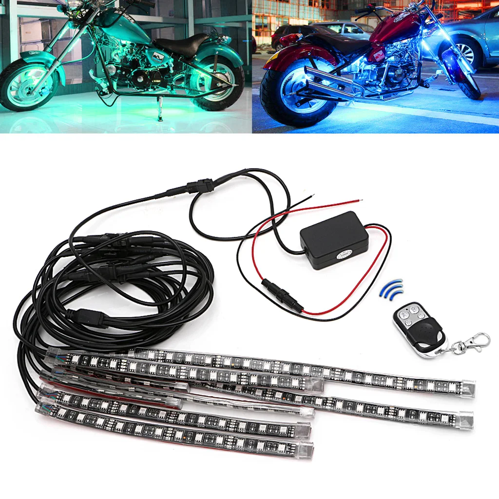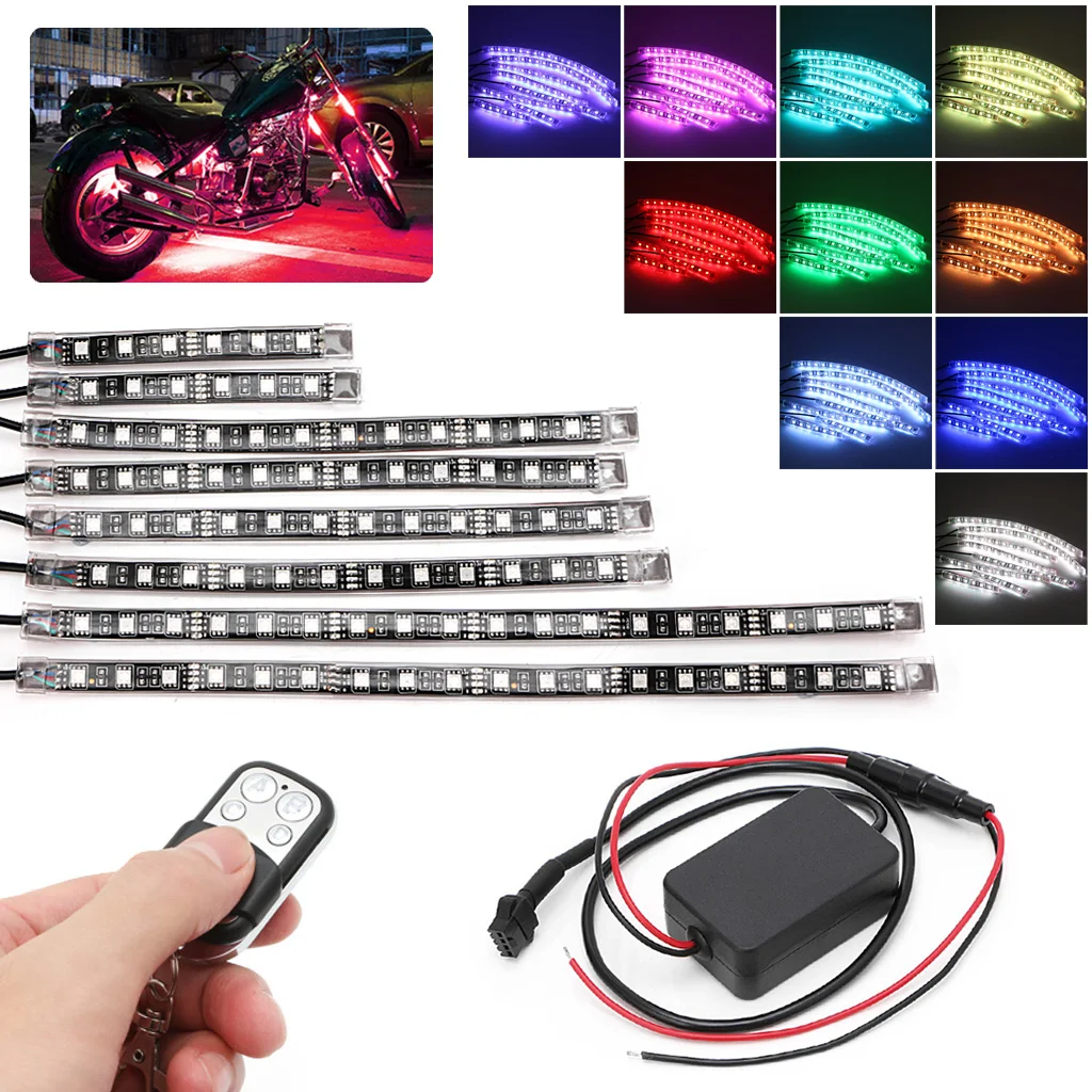 BEST QUALITY 8 Pcs 5050 SMD Strip Flexible RGB Flashing Light LED Remote Control Motorcycle